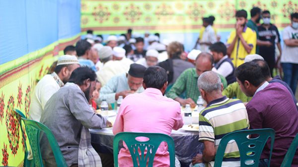 মেজবানে খাবার গ্রহণ করছেন গ্রামের লোকজন