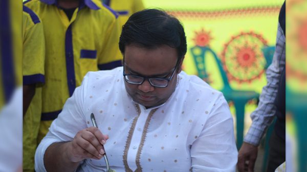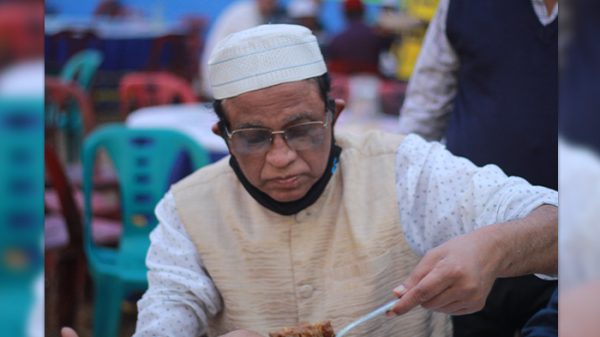 মিলাদ শেষে খাবার গ্রহণ করছে আমার জেঠাতো ভাই ডাঃ রউফ সরদার। ৩রা ডিসেম্বর ২০২১